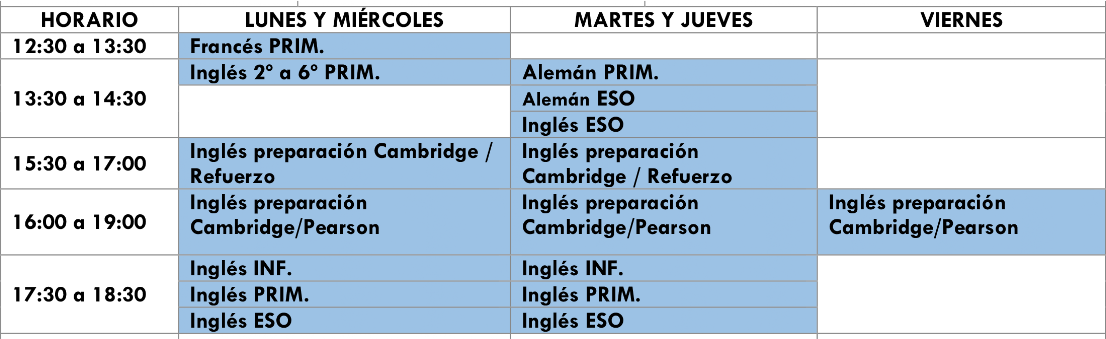 - Servicio de custodia incluido, desde las 17:00 hasta las 19:30.